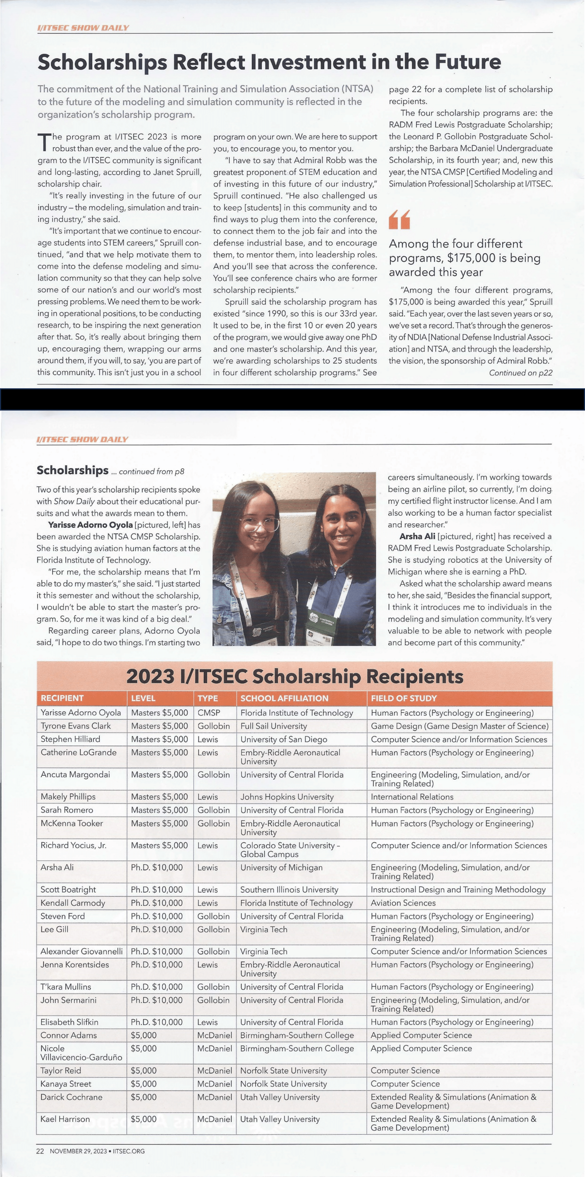 –Janet Spruill, I/ITSEC Scholarship Chair and EVP of Government Programs at Aptima